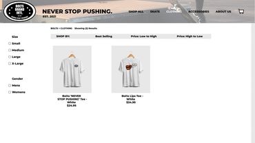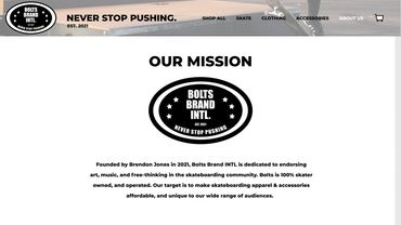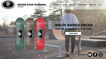 Founded in 2021, BOLTS Brand INTL is a graphic design capstone project I completed during my senior year at UMass Dartmouth. As someone who loves to go out and skate, BOLTS is inspired by streetwear, and designed with the skateboarding community, and current fashion trends in mind. It’s slogan, ‘Never Stop Pushing’ symbolizes my love for the sport, and my dedication to the art of design. In order to market my creations, I developed a logo, sticker art, and a digital storefront mockup for my brand.