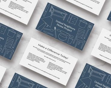 To begin this assignment, I first met with the Chief Volunteer Officer of the United Neighbors Project. She gave me background information about her project, and testified for her personal experience working with the families and individuals of low income communities. Her mission was to give her company an updated logo, as well as an informational flier she could use to promote her project, and to increase interest and awareness for her organization. After many revisions and back and forth zoom calls, my final deliverables for this project are a flier, an updated logo, a business card, and a “thank you” tote for donors to take home.